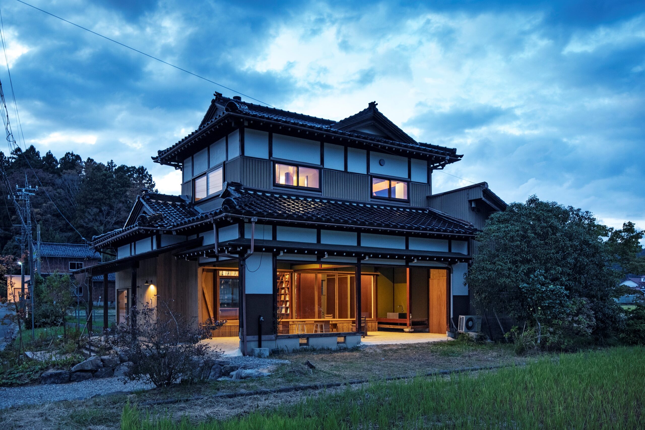 敷地の前面には山田川が流れ、その間に位置する河川管理用道路は地域住民の散歩道として親しまれています。建物はこの環境に対し、開放的な開口と、自然と立ち寄りたくなる縁側を用いたインターフェイスのデザインにより、内外一体の利用や風景の取り込みを巧みに実現し、周辺環境との良好な関係性を築いています。また、外灯の少ない地域においては、夜間に光をもたらす存在としてまちに安心感を与える点も評価できます。さらに、細部に至るまで丁寧で質の高いデザインが貫かれており、完成度の高い建築となっています。