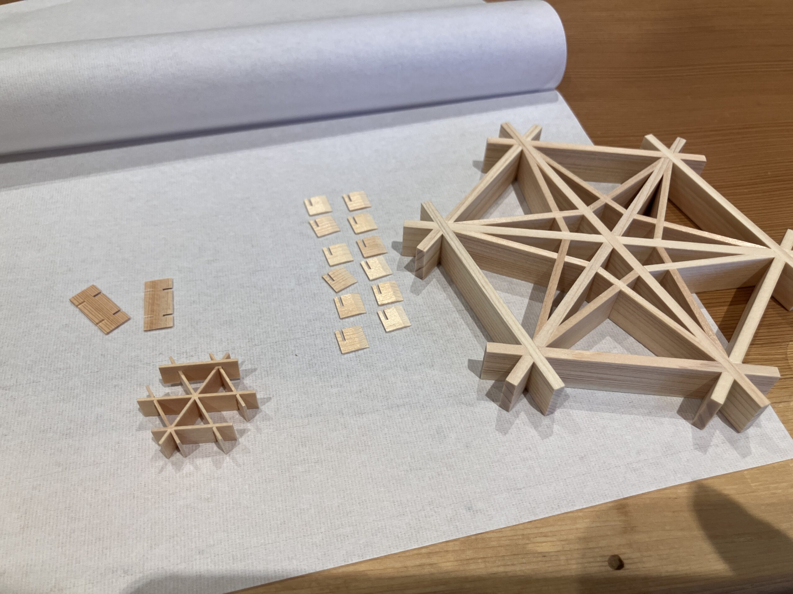一つのパーツの厚さはわずか0.78mm。ピンセットでないとつかめないほどの小ささです。この超精密組子の製作体験は、株式会社タニハタさんが初めて試みる企画で、「建築の専門家の人のために、高度な組子に挑戦してもらおう!」と、難易度の高い製作体験を特別に企画されたものです。